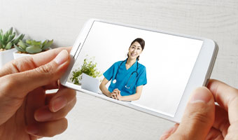 スマートフォン、パソコン、タブレットなどの情報通信機器を用いて、医師が患者を離れた場所からインターネット上でビデオ通話により診察および診断を行い、診断結果の伝達や処方等の診療行為を、リアルタイムに行うことです。